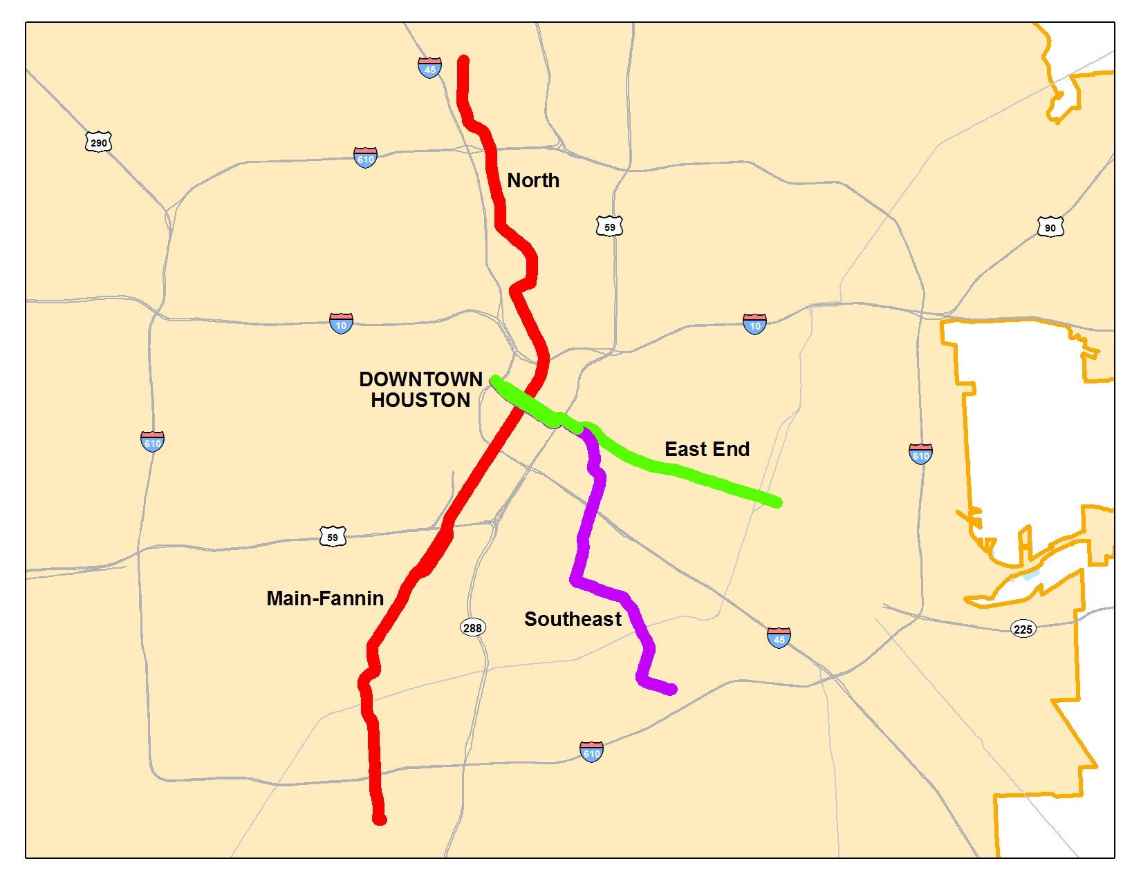 Description: <DIV STYLE="text-align:Left;"><DIV><DIV><P><SPAN>METRORail Lines was created using METMap. METRO's street centerline map is a version of Star*Map as created and maintained by the Geographic Data Committee of the Houston-Galveston Area Council. The METRORail Main-Fannin Corridor heading South from Downtown Houston was created as a centerline between the existing tracks as shown on January 2010 Aerial Photography. The North, East End and Southeast Corridors were created as a centerline track reprsentation as drawn over January 2010 aerial photography using engineering drawings and field work. These lines are under construction and are not depicted on the aerial photography. </SPAN></P></DIV></DIV></DIV>